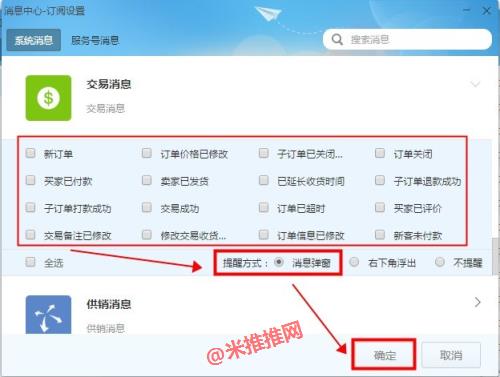 除了要勾选提醒的消息类型,还需要设置提醒方式为消息弹窗或右下角浮出,最后确定设置,这样就可以了哦,希望对你有帮助。