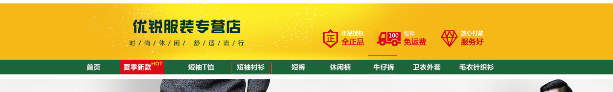 导航分类在后台装修怎么设置呀?之前在活动装修页增加导航分类,再加入SKU就可以了?现在怎么找不到在什么地方了,我意思在首页导航分类哪里点短袖衬衫就进入短袖衬衫页面,点牛仔裤就进入牛仔裤页面。请高手指教,谢谢!