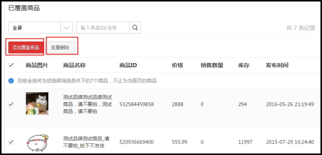 重新批量发布时,需要先将原来的商品批量删除,再添加覆盖商品。