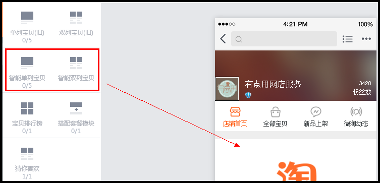 智能单双列宝贝千人千面模块是旺铺智能版的功能,请您先订购旺铺智能版哦!