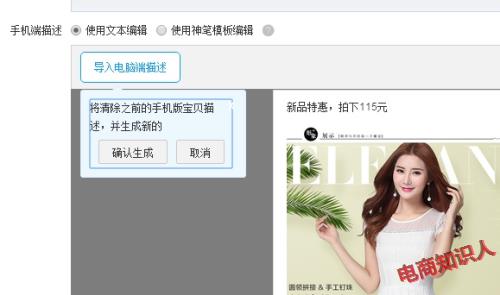 简单一点的话就是直接用pc端的直接转化成手机端的详情但是在无线电商市场的大环境下,建议pc详情和无线详情最好是分开来做的,无线的详情字体尽可能的大方便客户浏览查看信息,图片保证质量的情况下图片内存尽可能的小,在客户网速不好的时候也能尽快的加载出来您的详情,pc直接拿来做无线虽然比较省力但是不一定能达到效果哦