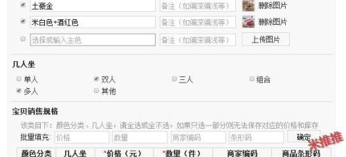 沙发宝贝发布时,几个坐怎么自定义?