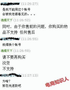 一个买家,用一个帐号拍下,聊天中说要退款,更换另一个帐号购买,是什么情况呢?请广大的商家作一下评论!同时也做一下警剔!请警剔次类诈骗案的发生,在淘宝上是成立,扣分兼扣钱,是维护买家的,广大商家如何想呢,在淘宝上我们卖家还有没有地位呢?这本身就是买家的第一意愿不需要的,而且还是过了漫长的2分钟,这样没货不正常吗?他申请了退款,我们也给他退了,他还能以无货上架,投诉的,在淘宝上,是成立的!