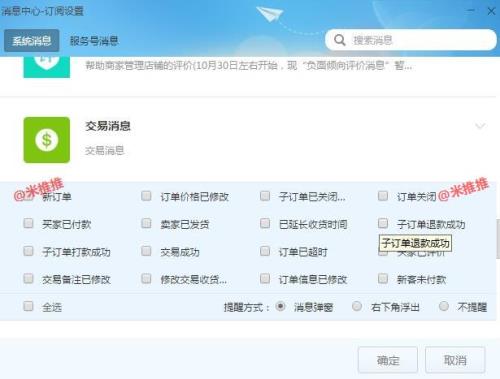 客服不提示是因为没有设置,消息中心订阅里面设置