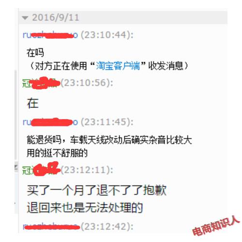 产品没问题,畸形买家自己改装了车的天线,导致不能使用购买的产品,在购买27天后要求退货退款,n本店在言语上拒绝了以后,此买家便在同一个晚上同一钟点宝贝“我问大家”提交了至少9项的答问攻击抹黑本店产品,8月15日的订单竟然可以回答到7月份别人的提问,不知道(就到:mituitui.COM)是怎样办到的?大家有遇过这样的问题什么,遇到应该什么办呢