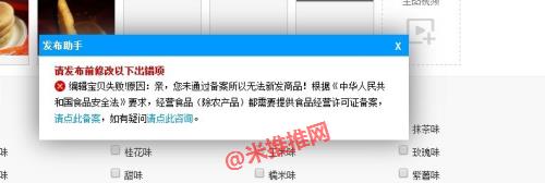 淘宝下架了我的宝贝,编辑后还不能重新上架,提示说我没有备案,可是食品经营许可证我已经备案了,怎么解决?