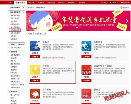 A.手机天猫专享价入口:【天猫营销中心】-【特价宝】。------新建特价活动:创建填写活动信息,完成点击“下一步”。-----找到创建的活动点击活动商品管理-----点击要参加折扣的商品------每个商品只能参与一次活动,选中参加商品点选下一步------设置手机天猫专享价:点击手机优惠设置(手机天猫专享价的折扣是PC当前优惠力度下的折扣,手机天猫专享价活动与全网无线用户只会展示一个)点击确定即完成设置。就可以了哦亲。如有帮助到您,记得点个赞,谢谢。【电商知识人】-果子狸。